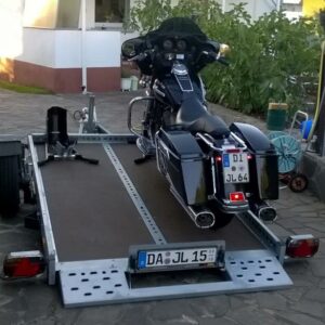 210 x 153 cm STLP Gebremster Motorradanhänger von Stema komplett mit Rampe.